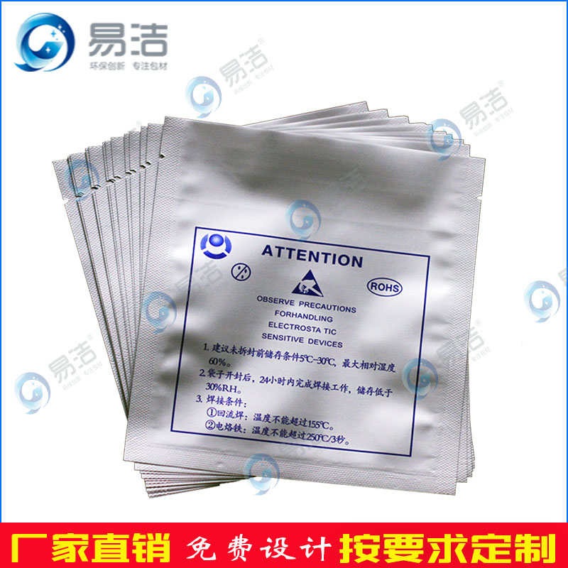 铝箔袋平口袋式、自封式(密实袋/拉链袋)、信封式、信封自粘式、连体式、立体式等,袋身图案可根据客户要求印刷;内外表面电阻值:108—1011Ω.